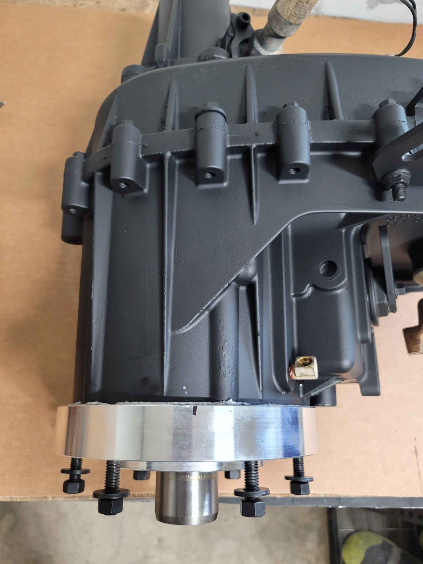 - This adapter bolts directly to the NP242AMG transfer case. (The factory studs must be removed).